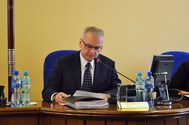 - Znali ją wszyscy płocczanie, a przynajmniej ci zgromadzeni na tej sali – przypominał przewodniczący Artur Jaroszewski na początku dziewiątej sesji. Przywołał też kilka faktów z jej życia, jak pełnienie funkcji rzecznika osób niepełnoprawnych w płockim Ratuszu i szefowanie „Silnym razem”. - Codziennie toczyła walkę ze swoją niepełnosprawnością, mottem własnego życia uczyniła pomaganie innym. To była wspaniała kobieta, dobra, współczująca i waleczna. Człowiek o gołębim sercu. Jednak chwile smutne, jak to w życiu bywa, przeplatają się z tymi radosnymi – i powitał osoby uhonorowane medalem „Zasłużony dla Płocka”: biskupa Romana Marcinkowskiego i dyrektora płockiego teatru Marka Mokrowieckiego. Obaj świętują ostatnio wiele jubileuszy.