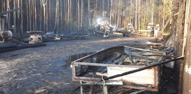 Późnym popołudniem straż pożarna dostała wezwane do pożaru stolarni w Duninowie Dużym. Palił się tartak, ogień zajął też fragment lasu.