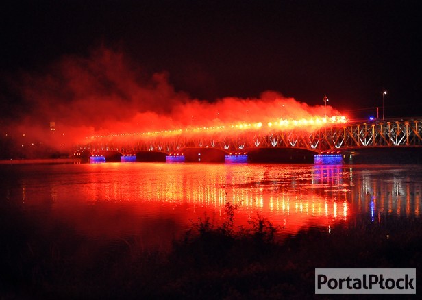 Przed 23.00 ze starego mostu popłynął nostalgiczny dźwięk hejnału płockiego, potem blisko setką rac zapłonął stary most. Mimo chłodnej nocy płonącą żywą czerwienią przeprawę mostową ze Wzgórza Tumskiego i oglądało kilkadziesiąt osób, część przechodziła przypadkiem, ale większość przyszła specjalnie po to, by popatrzeć na widowisko. Znad rzeki wystrzelono również race, które bardzo powoli opadały nad skarpą, tańcząc na wietrze, blaskiem rozbłysło również pięknie oświetlone płockie molo. To drugi z kolei raz, gdy płoccy kibice w ten sposób uczcili obronę Płocka przed bolszewicką Rosją.