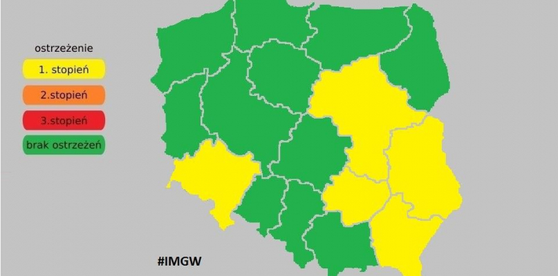 Instytut Meteorologii i Gospodarki Wodnej wydał ostrzeżenia pierwszego stopnia dla pięciu województw. Wśród nich znalazło się również województwo mazowieckie.