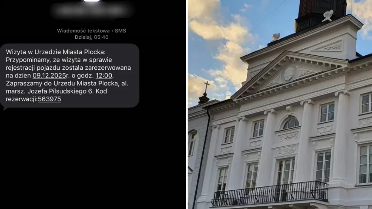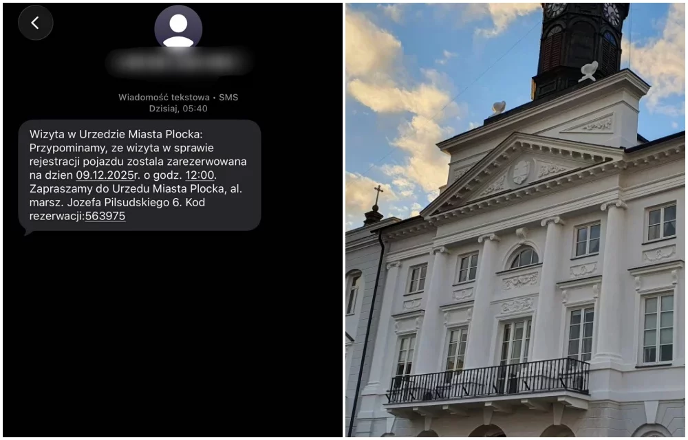 Wizyta w Urzędzie Miasta Płocka: Przypominamy, że wizyta w sprawie rejestracji pojazdu została zarezerwowana na dzień 09.12.2025 r. o godz. 12:00. Zapraszamy do Urzędu Miasta Płocka, al. marsz. Józefa Piłsudskiego 6. Kod rezerwacji: 563975 - taką wiadomość otrzymał m.in. pan Michał, który dostał SMS-a około godziny 5:40 w środę, 3 grudnia. Co w tym dziwnego?