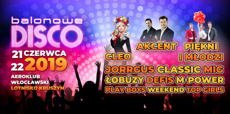 Balonowe Disco 2019 to nowość w kalendarzu polskich imprez tanecznych, która z biegu zyskała sympatię Polaków. Najbardziej taneczna impreza roku odbędzie się w Kruszynie pod Włocławkiem na terenie Aeroklubu Włocławskiego. Przez dwa dni na wielkiej scenie wystąpią największe gwiazdy muzyki disco-polo. Bilety w promocyjnej sprzedaży – od 35 do 55 zł tylko do końca kwietnia.