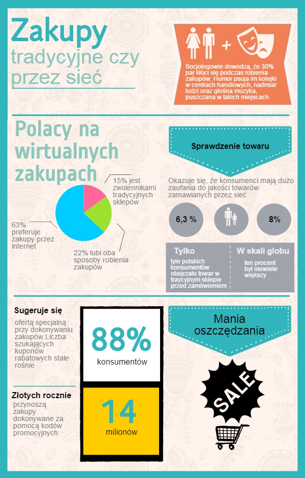 Statystycznie co druga osoba w Polsce robi zakupy w sieci. Za ich zalety uważa się przede wszystkim wygodę, nieograniczony wybór, konkurencyjne ceny i dostawę towaru bezpośrednio do domu. Oprócz tego w sieci znaleźć można wiele stron udostępniających – które od wielu już lat są bardzo powszechne np. w Stanach Zjednoczonych, a u nas dopiero zyskują zwolenników. Powoli modne stają się strony, na których można okazyjnie „upolować” praktycznie wszystko - od wycieczki objazdowej i pobytu w SPA, przez odzież, aż po zabieg medycyny estetycznej. Możemy zamówić dosłownie wszystko bez wychodzenia z domu - jedzenie, obuwie, elektroniczne gadżety itp.