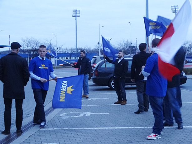 Były lider Unii Polityki Realnej miał do kogo przemawiać - sala w Orlen Arenie wypełniła się w całości, przeważnie młodymi ludźmi. Zajęto wszystkie krzesełka, sporo osób stało. Różnica w stosunku do jego wizyty w październiku ubiegłego roku polegała jednak na tym, że już nawet nie reprezentował Kongresu Nowej Prawicy, ale promował siebie jako lidera KORWiN-a (Koalicji Odnowy Rzeczpospolitej Wolność i Nadzieja) z hasłem przewodnim "Dumna, bogata Polska". Kandydatowi towrzyszył m.in. Dariusz Grabowski.