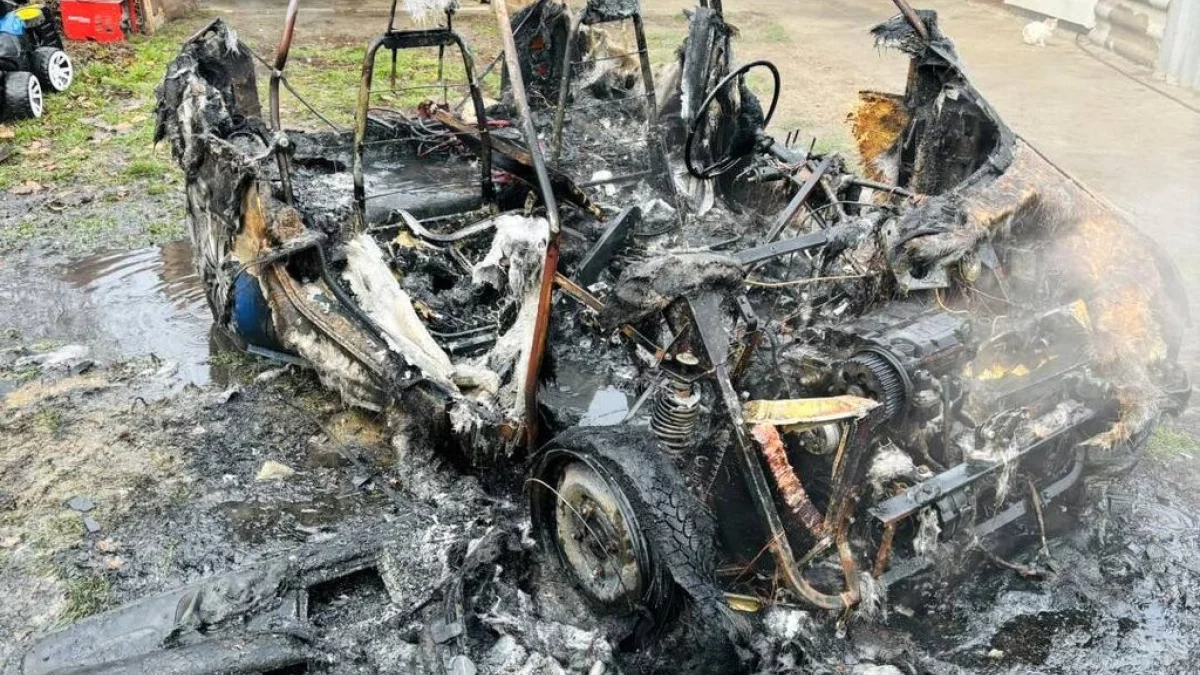 Auto stało na podwórku na prywatnej posesji, prawdopodobną przyczyną pożaru było zwarcie instalacji elektrycznej.