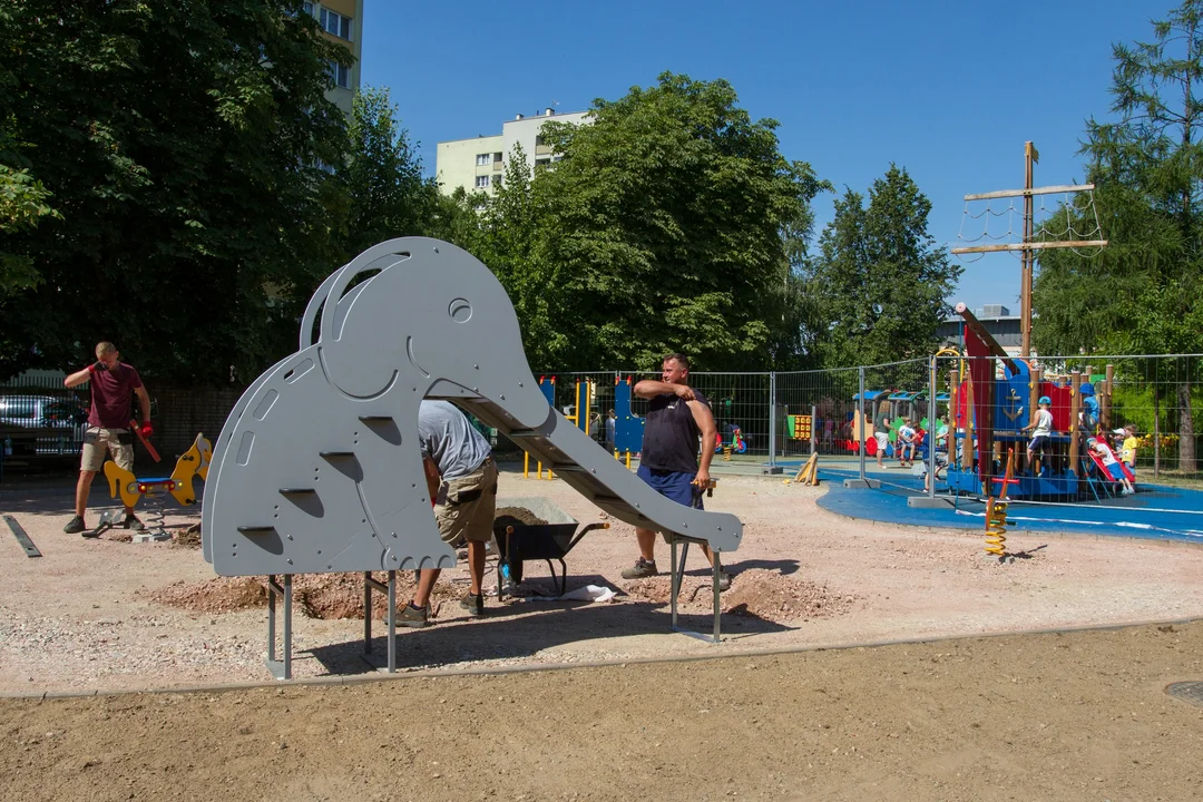 - Na bezpiecznej nawierzchni poliuretanowej zamontowane zostaną urządzenia: konik, żyrafa i ważka na sprężynie, piaskownica z zadaszeniem, zjeżdżalnia słonik i domek dla maluchów - wymienia prezydent Płocka, Andrzej Nowakowski.