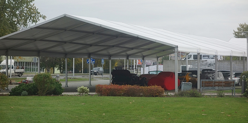 Orlen Arenę otaczają już parkany. To przygotowanie do sobotniej imprezy motoryzacyjnej, Verva Street Racing. Wspomniane zadaszenie górnej części parkingu powstaje na potrzeby tego samego wydarzenia.