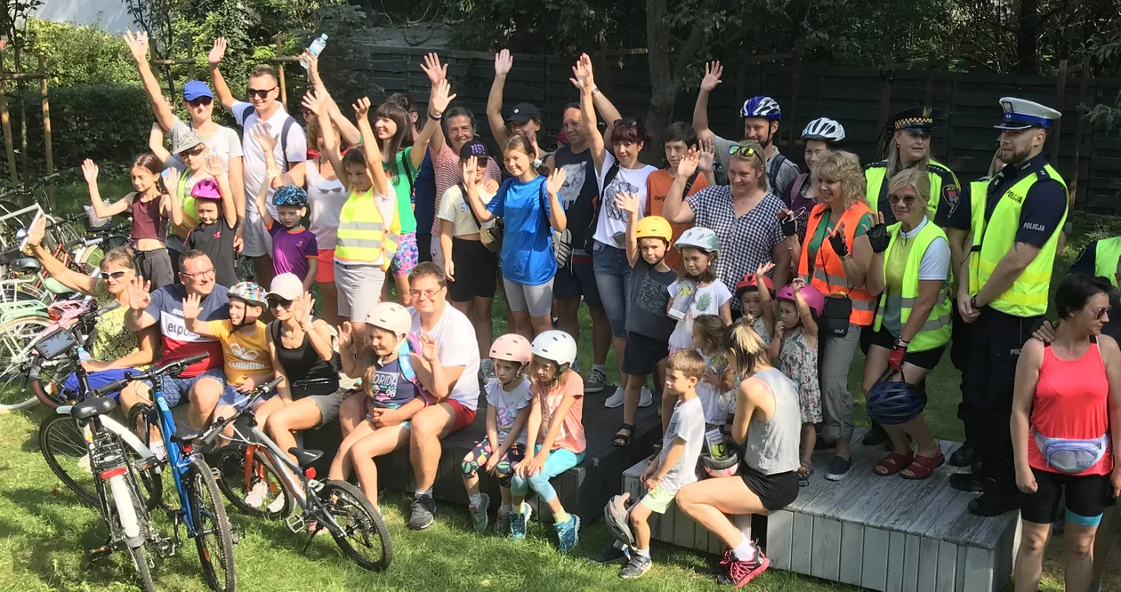 Miłośnicy dwóch kółek byli w wieku już nawet 2-3 lat, część oczywiście zajęłą miejca na rowerze rodziców. Uczestnicy rajdu "Historia kołem się toczy" otrzymali wodę na trasę, bo temperatura była wysoka już o godz. 10:00.