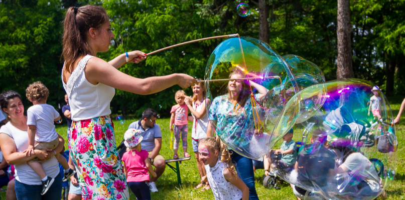 Organizatorzy przewidzieli specjalne warsztaty, ale każdy z odwiedzających mógł spróbować swoich sił w puszczaniu zarówno małych, jak i ogromnych bąbli. Zabawy i uśmiechu było co niemiara.