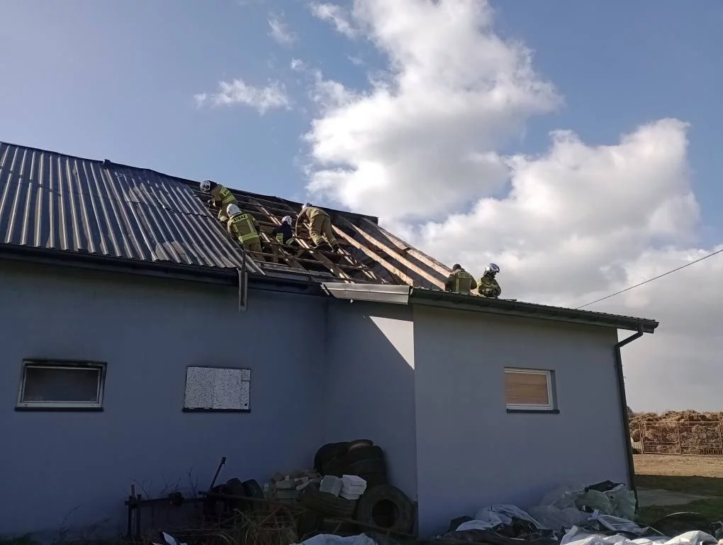 Na miejscu pracowali strażacy z OSP Bądkowo Kościelne i OSP Sobowo, którzy zabezpieczyli naruszone elementy poszycia.