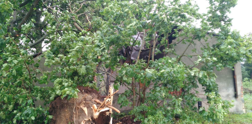 Burza, która przeszła w czwartek nad ranem nad Płockiem i powiatem płockim, uszkodziła m.in. drzewo, które zwaliło ścianę nieczynnego młyna w Staroźrebach Kolonii.