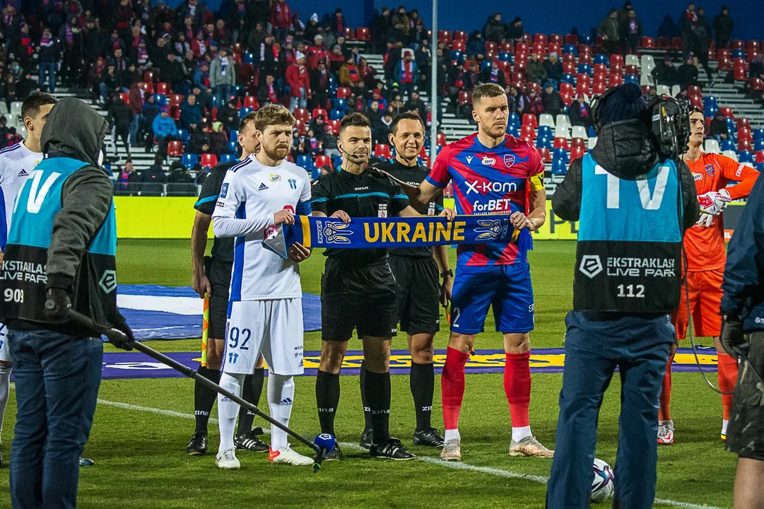 Przed meczem kapitanowie obu drużyn, w geście wsparcia dla naszych sąsiadów, rozciągneli szalik Ukrainy.