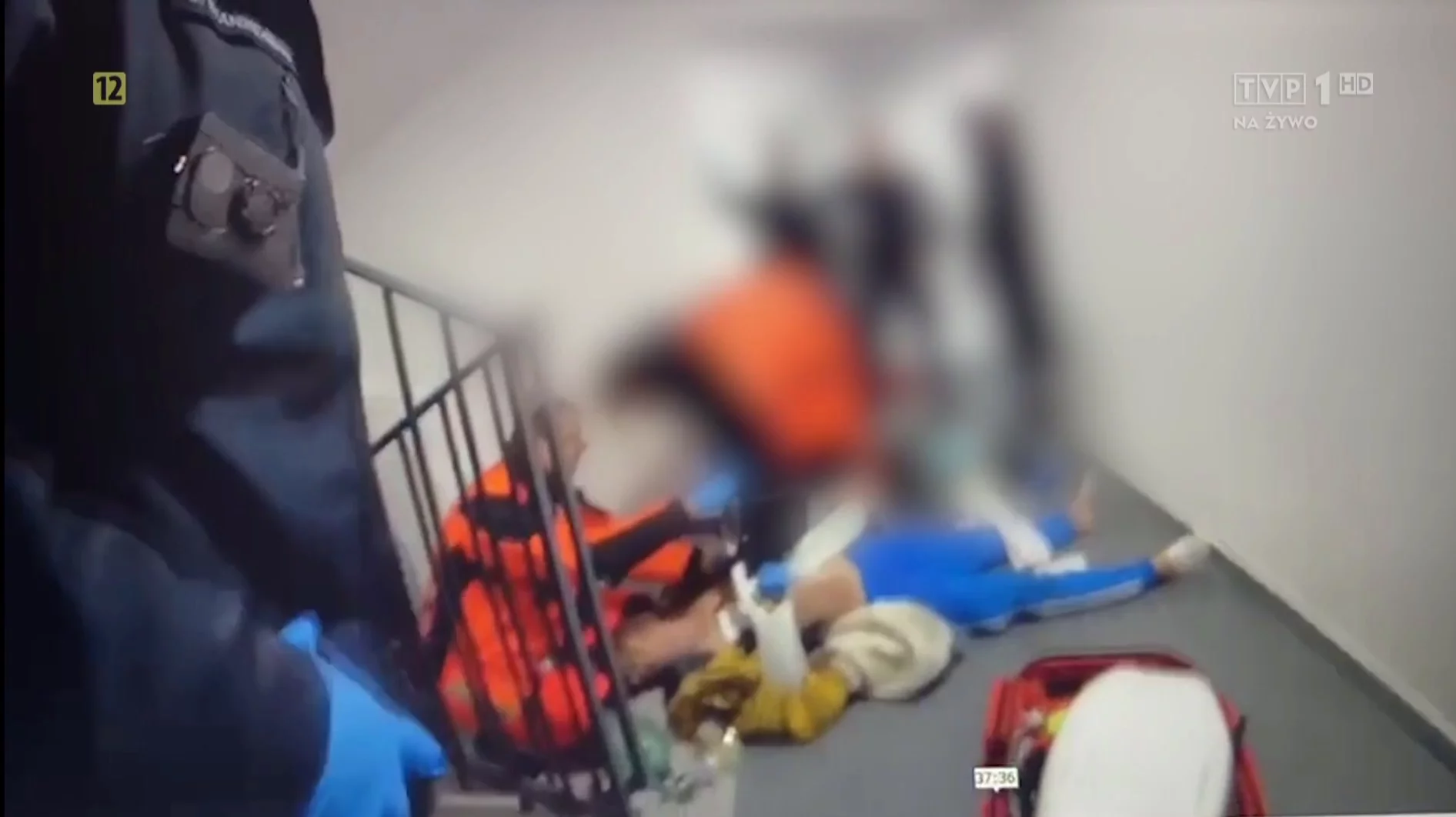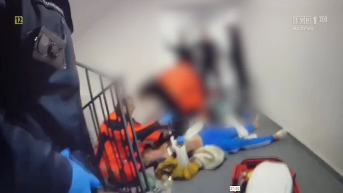 Dziennikarze programu "Reporterzy" dotarli do nagrań z tej interwencji. W programie widzimy, jak pierwszy patrol próbuje skuć mężczyznę. Finalnie skuty mężczyzna jest przygniatany do schodów, a potem do podłogi. W interwencji, jak podają "Reporterzy", bierze udział 10 policjantów. W pewnym momencie zaniepokojona partnerka mężczyzny sprawdza, dlaczego mężczyzna jest siny. Robi się nerwowo. Policjanci rozkuwają go, zaczyna się reanimacja, wezwana zostaje karetka.