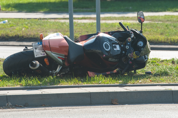Do zdarzenia doszło w niedzielę w południe na skrzyżowaniu Jachowicza z Dworcową w rejonie Politechniki. Do szpitala trafił motocyklista.
