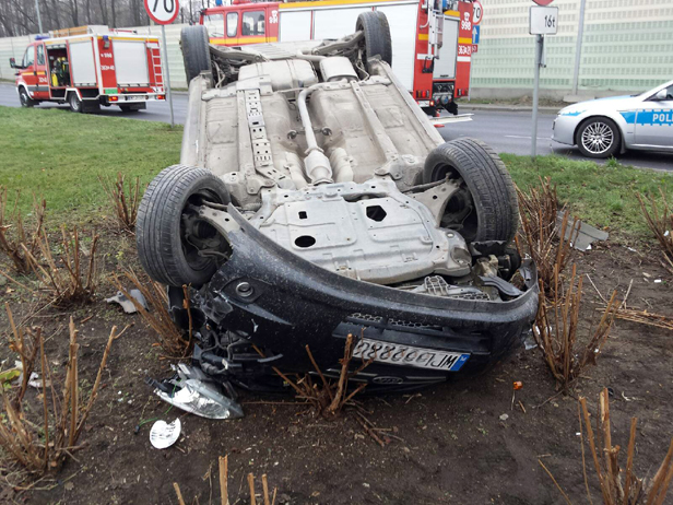 W wyniku zderzenia kia odbiła się od sygnalizatora i dachowała. Kierująca autem 37-latka i 6-letnie ddziecko zostali odwiezieni do szpitala. Byli przytomni. Wiadomo też, że kierowcy byli trzeźwi.