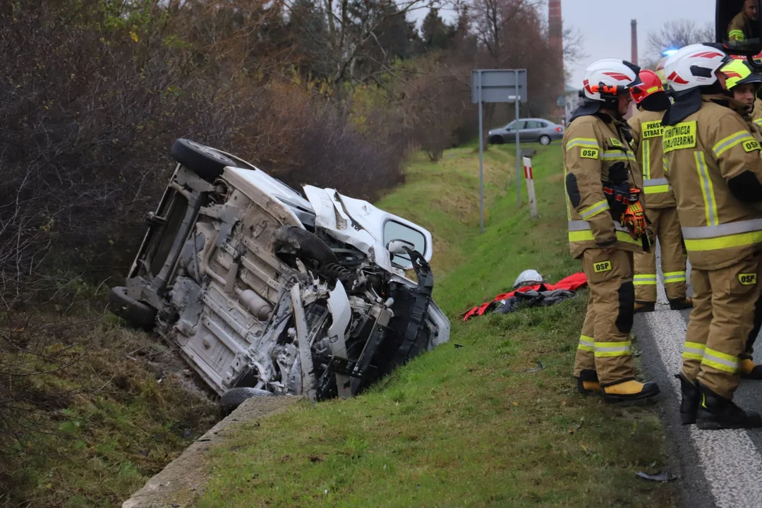 Do zdarzenia doszło około godziny 13:15 w okolicy miejscowości Strzelce. Z nieznanych na chwilę obecną przyczyn dachował tam samochód.
