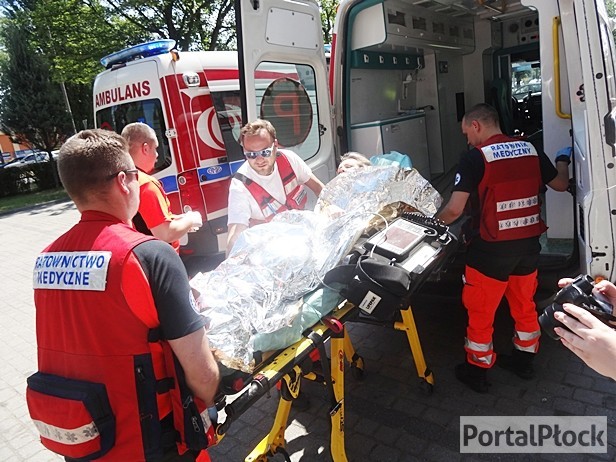 Dwie osoby musiały przejść pełną dekontaminację, by zneutralizować toksyczną substancję. Część dostała foliowe okrycia, natomiast najciężej rannych oddano pod opiekę ratowników z drugiego namiotu. Po udzieleniu pierwszej pomocy przeniesiono ich na noszach do karetki, a następnie przewieziono do ustalonego punktu medycznego, który zaaranżowano w bursie płockiej. Cały parter zamieniono tam w zaimprowizowany szpital.