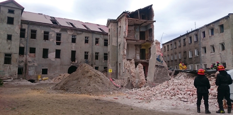 Przypomnijmy: w piątek przed południem na podwórko runęła oficyna przy staromiejskiej kamienicy, której remont niedawno się rozpoczął. Gruz dotkliwie ranił kierownika robót, zniszczył stojący obok samochód, a także uszkodził sąsiedni budynek, z którego trzeba było ewakuować 46 mieszkańców. Trzy z tych osób zdecydowały się skorzystać z noclegów zapewnionych przez Miejskie Centrum Zarządzania Kryzysowego, pozostali nocowali u rodzin i znajomych.
