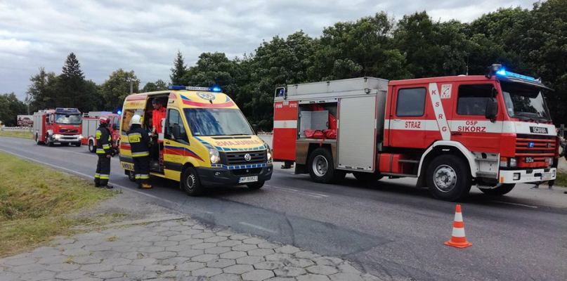Jak informują strażacy z OSP w Sikorzu, do niebezpiecznego zdarzenia doszło w Sikorzu, gmina Brudzeń Duży na drodze powiatowej 559 około godz. 18. Samochód osobowy zderzył się z motocyklem, w wyniku czego jedna osoba odniosła obrażenia i została zabrana do szpitala wojewódzkiego w Płocku. W działaniach uczestniczyły oprócz jednostki OSP dwie jednostki straży pożarnej z Płocka. Na miejscu czynności prowadziła również policja. Występowały czasowe utrudnienia w ruchu.