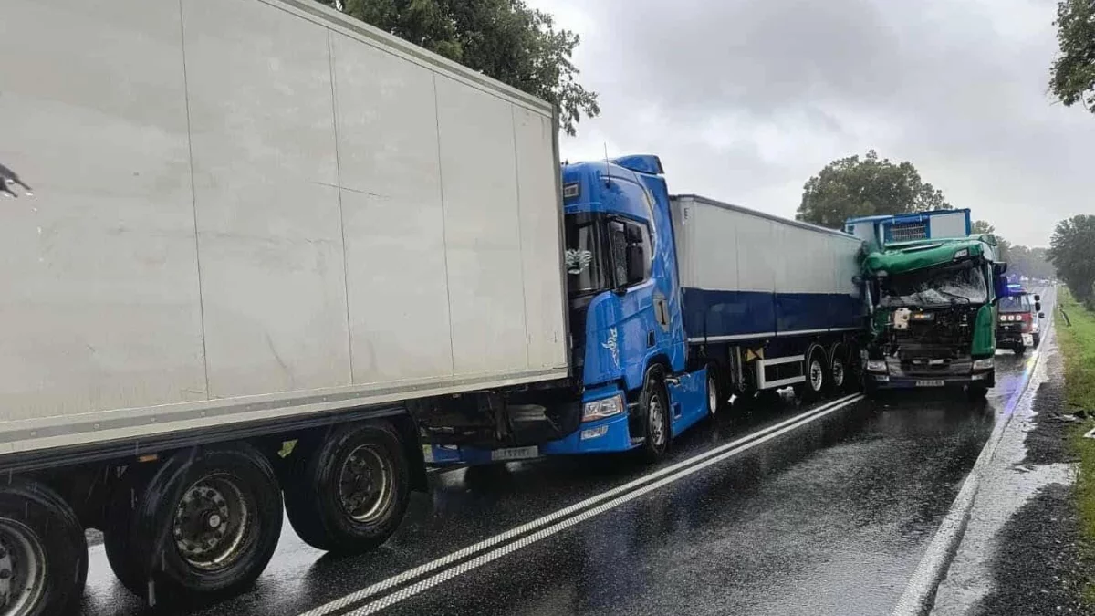 Do zdarzenia doszło na ulicy Bielskiej. Zderzyły się 3 pojazdy ciężarowe.