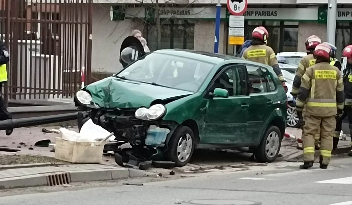 - Kierujący pojazdem marki Kia nie zastosował się do sygnalizacji świetlnej w wyniku czego zderzył się z kierującą volkswagenem - precyzuje Jakubowska. - Kobieta uderzyła następnie w słupki, sygnalizator oraz latarnie.