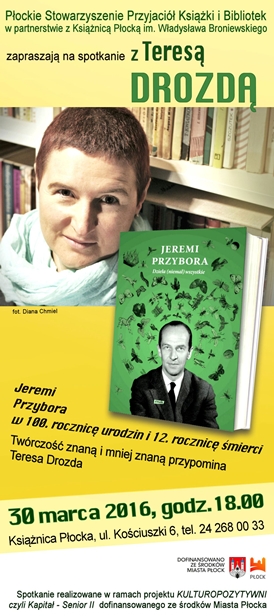 Drugim powodem, dla którego warto wygospodarować trochę czasu na spotkanie w Książnicy Płockiej, jest sama Teresa Drozda, jako znawczyni twórczości i redaktorka „Dzieł (niemal) wszystkich” Przybory. To wieloletnia dziennikarka radiowa. Współpracowała już m. in. z RMF i Program 1 Polskiego Radia. W Trójce prowadziła m. in. popularny cykl „Powtórka z rozrywki” czy Trójkę pod Księżycem. Aktualnie prowadzi audycję poświęconą muzyce czeskiej, przeważnie folkowej i poetyckiej na antenie RDC. Rozmawia z gośćmi na temat kultury, w tym literatury. Członkini zarządu Fundacji Okularnicy im. Agnieszki Osieckiej. Należy też do kolegium redagującego rocznik kulturalny „Piosenka” wydawany przez Muzeum Polskiej Piosenki w Opolu. Specjalistka w dziedzinie piosenki literackiej, od 1998 roku prowadzi poświęcony jej autorski vortal: www.strefapiosenki.pl; wraz z partnerem prowadzi też teatralnego bloga: www.chodzimydoteatru.blox.pl.